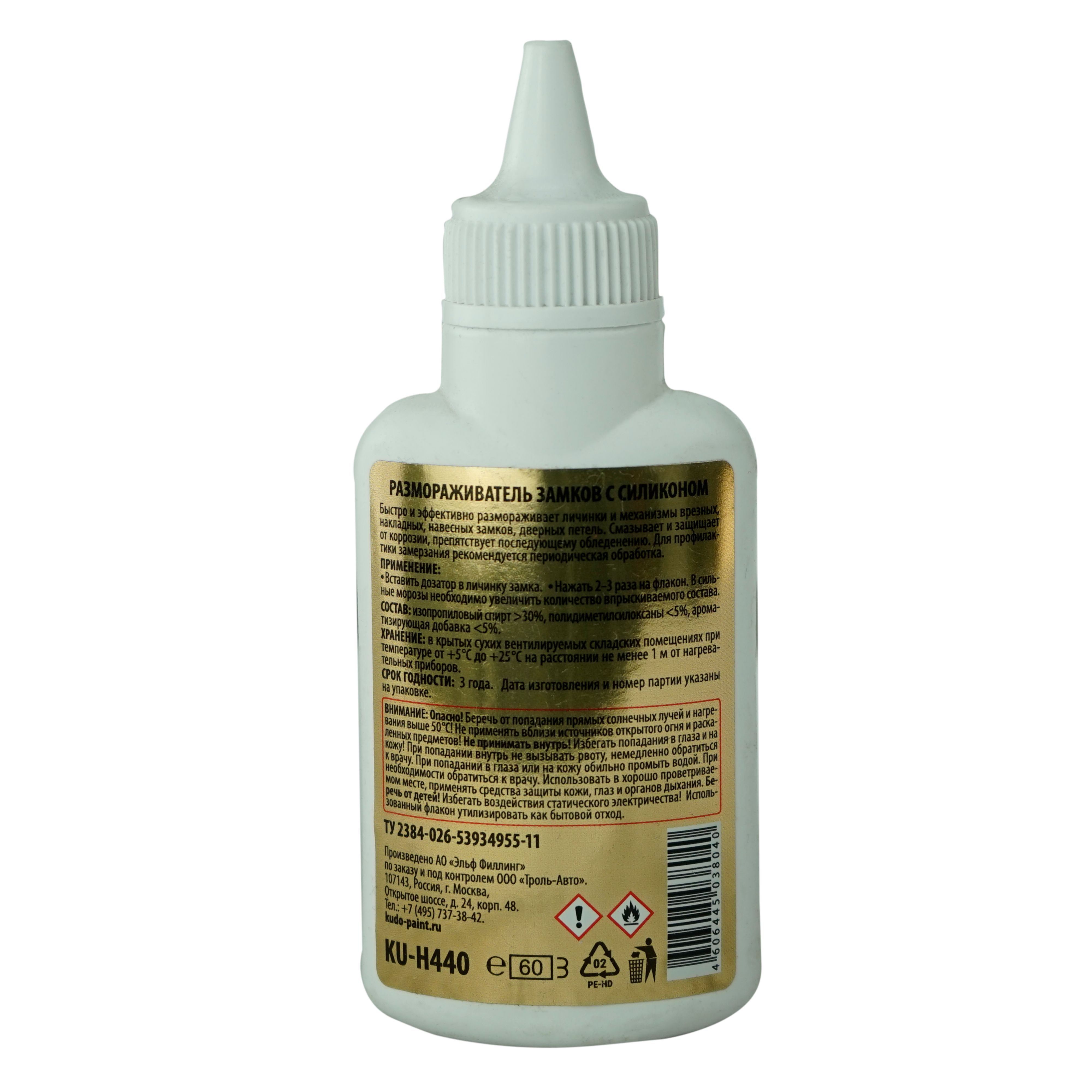 Размораживатель замков с силиконом KUDO® KU-H440 смазывает и защищает от коррозии, препятствует последующему обледенению. Для профилактики замерзания рекомендуется периодическая обработка.
