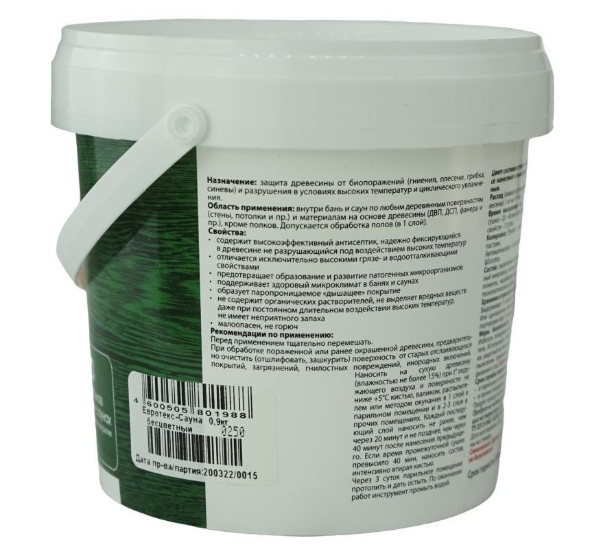 - Содержит высокоэффективный антисептик, надежно фиксирующийся в древесине и не разрушающийся под воздействием высоких температур;