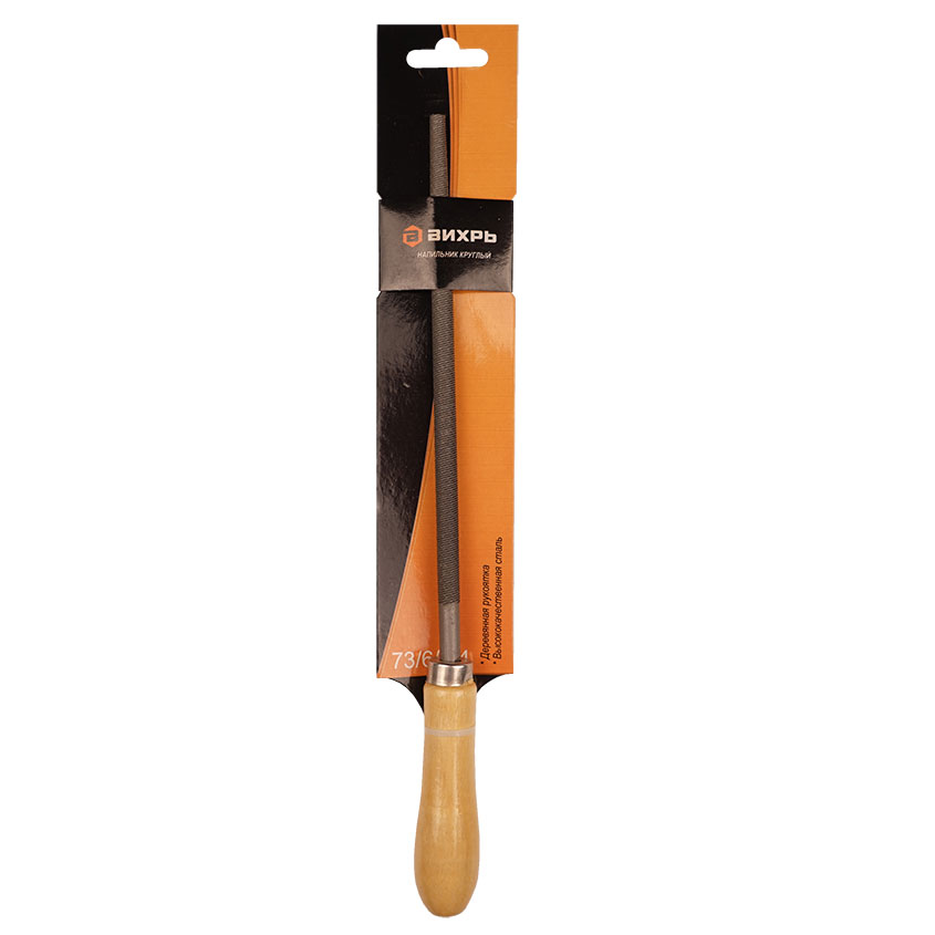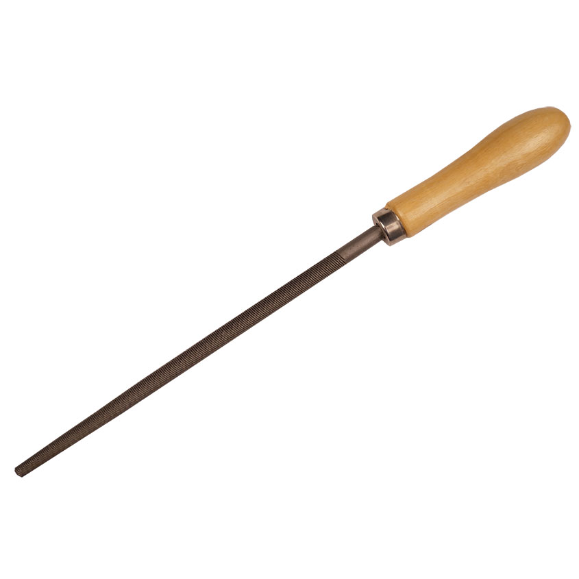 Напильник круглый с деревяной ручкой 200мм – специальный ручной инструмент, имеющий круглую форму стержня сужающуюся от середины к носу, на которую нанесена двойная перекрестная насечка №2.