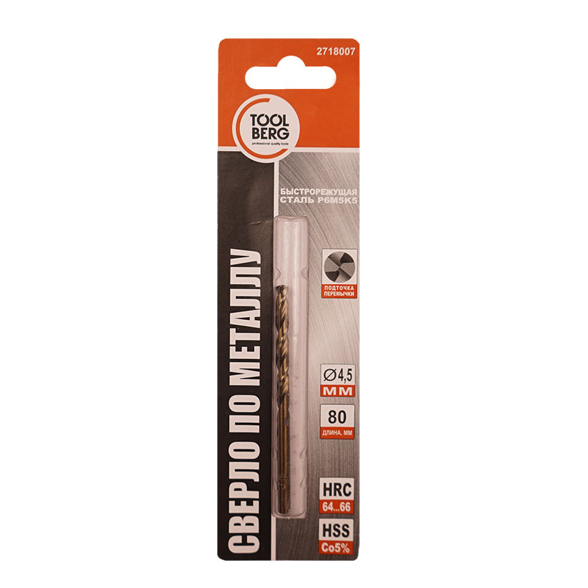 Сверло (PQTools) по металлу, крестообразная подточка, 4,5х80мм обеспечивает изготовление точных аккуратных отверстий за счет строгого кругового вращения сверла без биения. Изготовлено из высококачественной быстрорежущей стали прошедшей специальную термическую обработку.