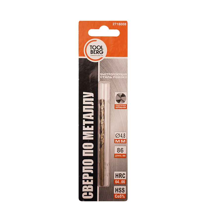 Сверло (PQTools) по металлу, крестообразная подточка, 4,8х86мм обеспечивает изготовление точных аккуратных отверстий за счет строгого кругового вращения сверла без биения. Изготовлено из высококачественной быстрорежущей стали прошедшей специальную термическую обработку.