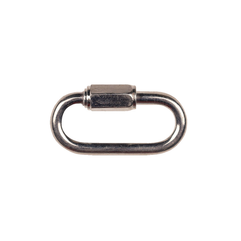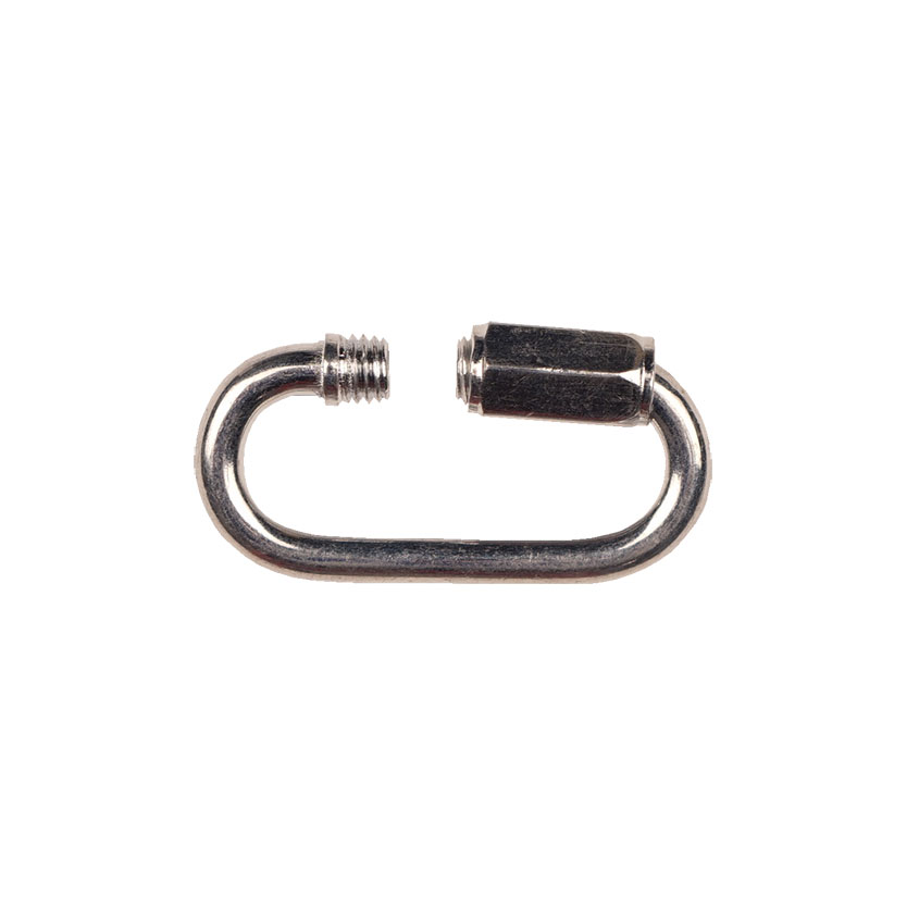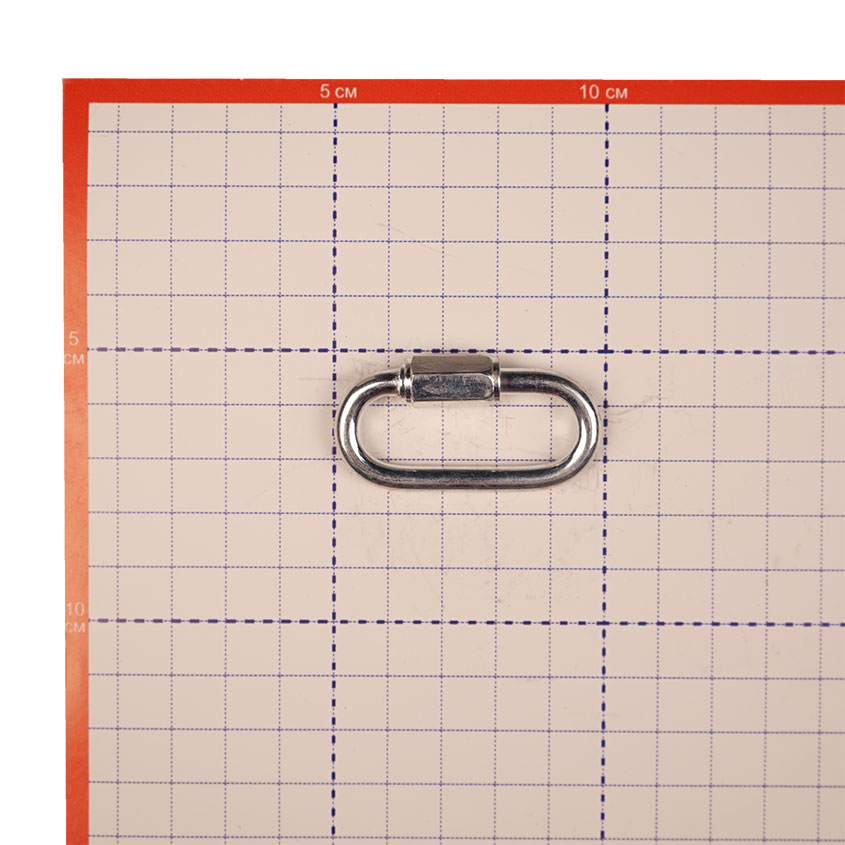 Карабин винтовой 5мм крепежный элемент, применяемый для соединения или крепления всех типов цепей, элементов цепей, тросов и канатов. С помощью винтового карабина можно быстро соединить разорвавшуюся цепь или, используя карабин как звено, нарастить до необходимой длины.