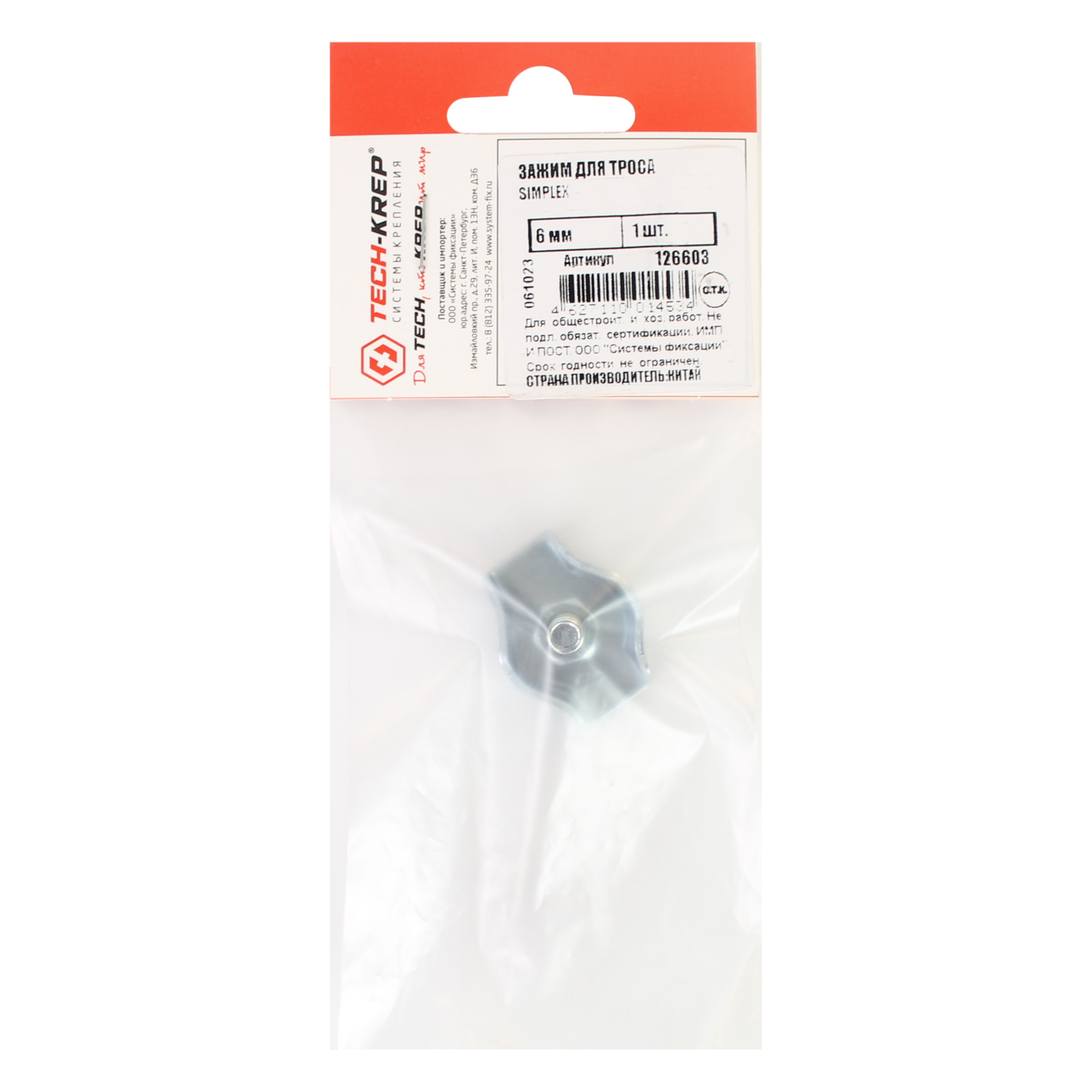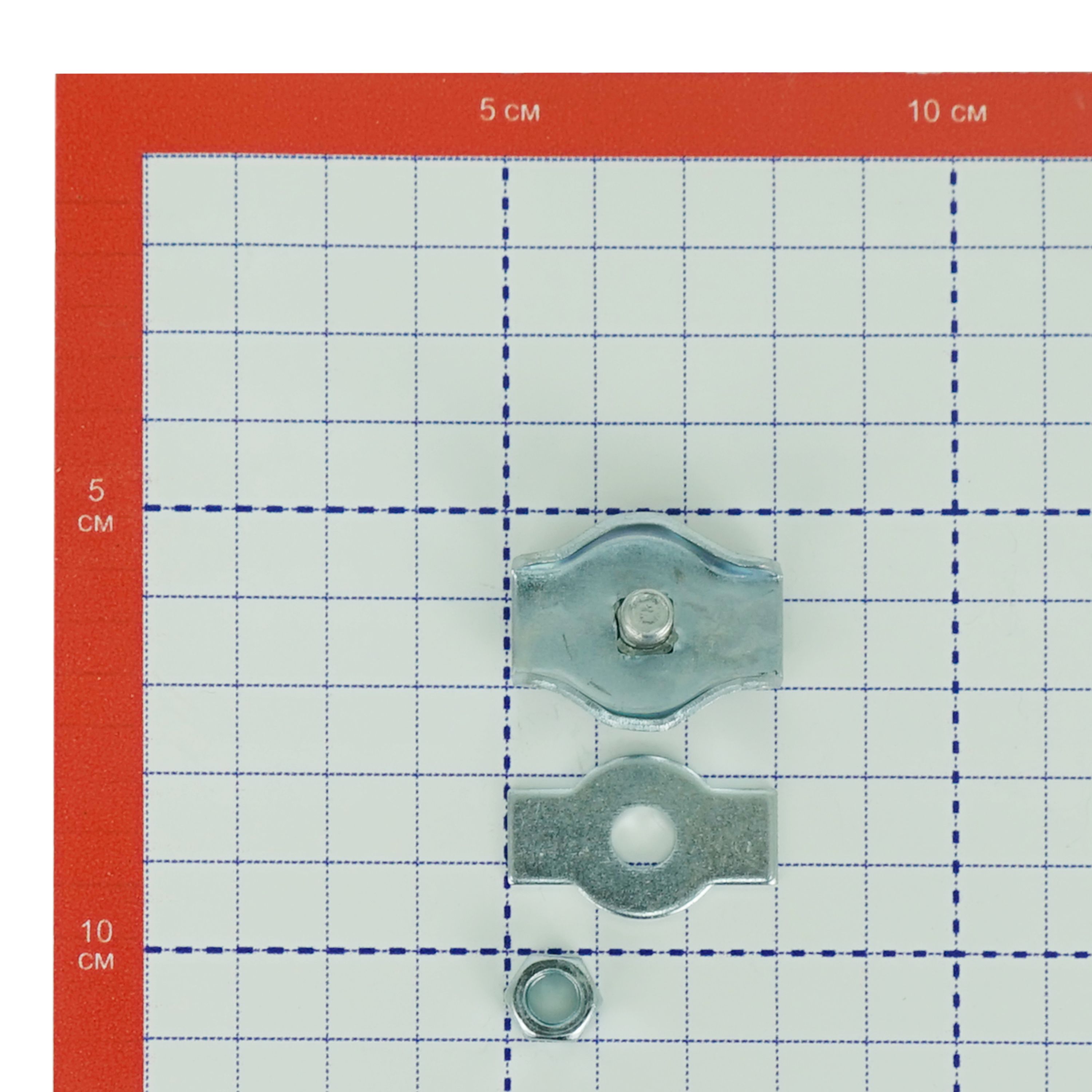 Зажим для троса одинарный C-SWR (Simplex) состоит из следующих элементов: пластина с изогнутыми краями, которая служит основанием, приваренный к пластине-основанию винт с метрической резьбой, прижимная пластина и шестигранная гайка. Зажим изготовлен из углеродистой стали с антикоррозионным цинковым покрытием.