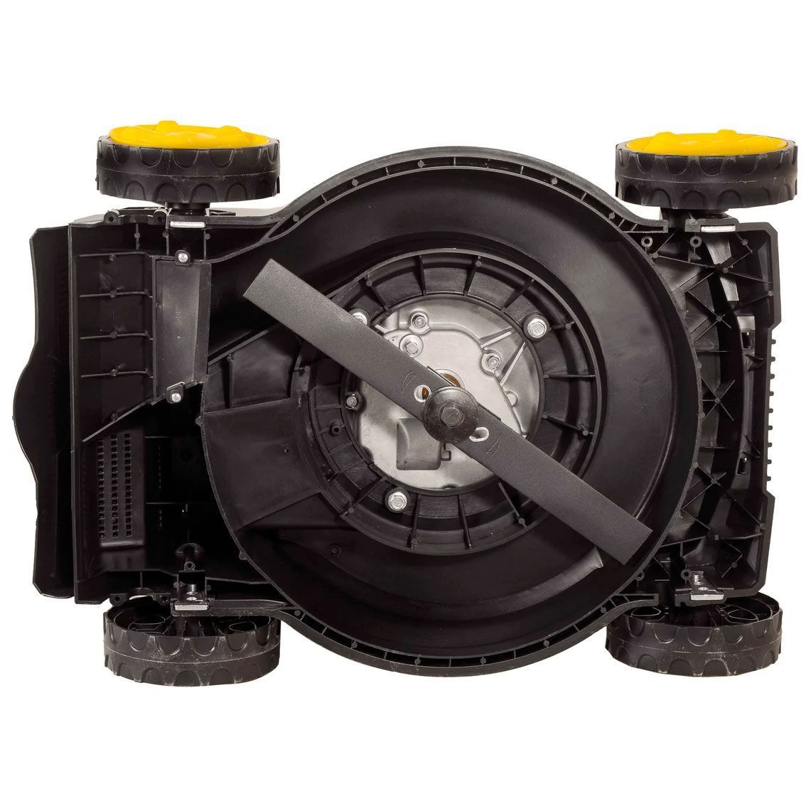 - Стальные ножи срезают 420 мм травы в ширину, что позволяет быстро проходить большие площади. Скошенный газон собирается в большой тканевый травосборник объёмом 45 литров. Боковой выброс и функция мульчирования не предусмотрены;