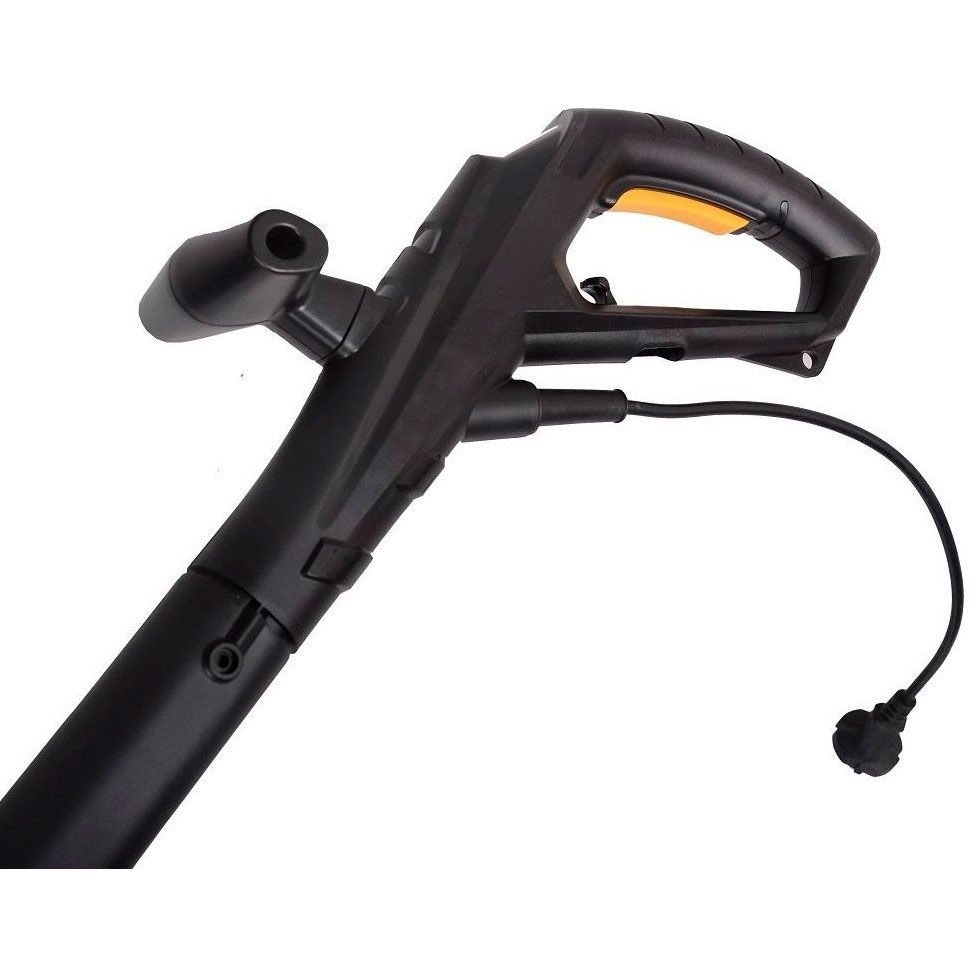 Электрический триммер работает от синхронного двигателя, установленного в нижней части конструкции. За счет такого расположения электромотора крутящий момент передается напрямую на головку с режущей леской. Компактность устройства и малый вес 1,35 кг позволяют использовать его в любых труднодоступных местах: под кустами, вдоль забора, между грядками. Управление вынесено в верхнюю часть электротриммера: кнопка включения/выключения размещена непосредственно на рукоятке, что облегчает ее удержание в процессе работы. Для удобства эксплуатации на штанге имеется дополнительная рукоятка, которую можно держать второй рукой. В качестве режущего инструмента выступает головка с леской. Для данной модели электрического триммера рекомендуется использование лески толщиной 1,2 мм. Регулировать длину можно с помощью специального обрезчика. При включении двигателя леска вращается со скоростью 10000 об./мин, что позволяет легко справляться со срезанием мягкой травы, сухостоя. Защиту ног от попадания отлетающего в сторону мусора, травы, камней обеспечивает специальный пластиковый кожух.
