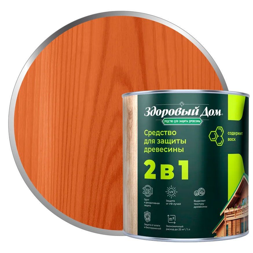 Состав деревозащитный Здоровый Дом 2в1 алкидный, махагон 0,8л