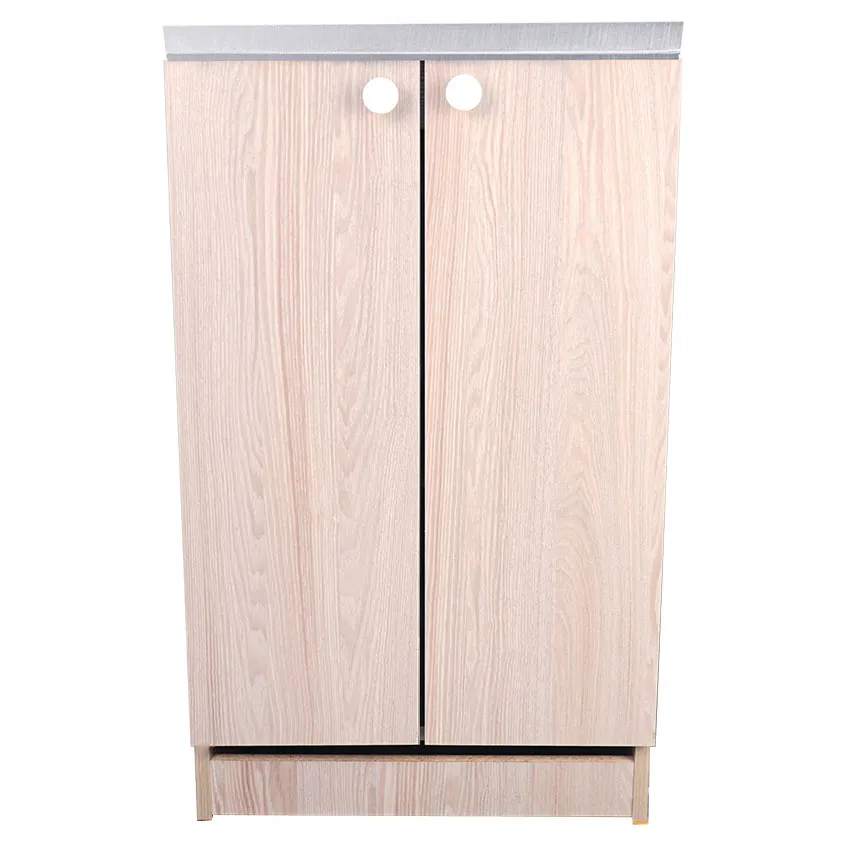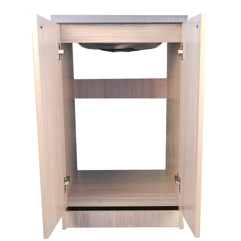 Тумба под мойку выполнена из влагостойкой ДСП. Поставляется в разобранном виде, в комплекте с фурнитурой, прижимами для мойки и регулируемыми ножками.