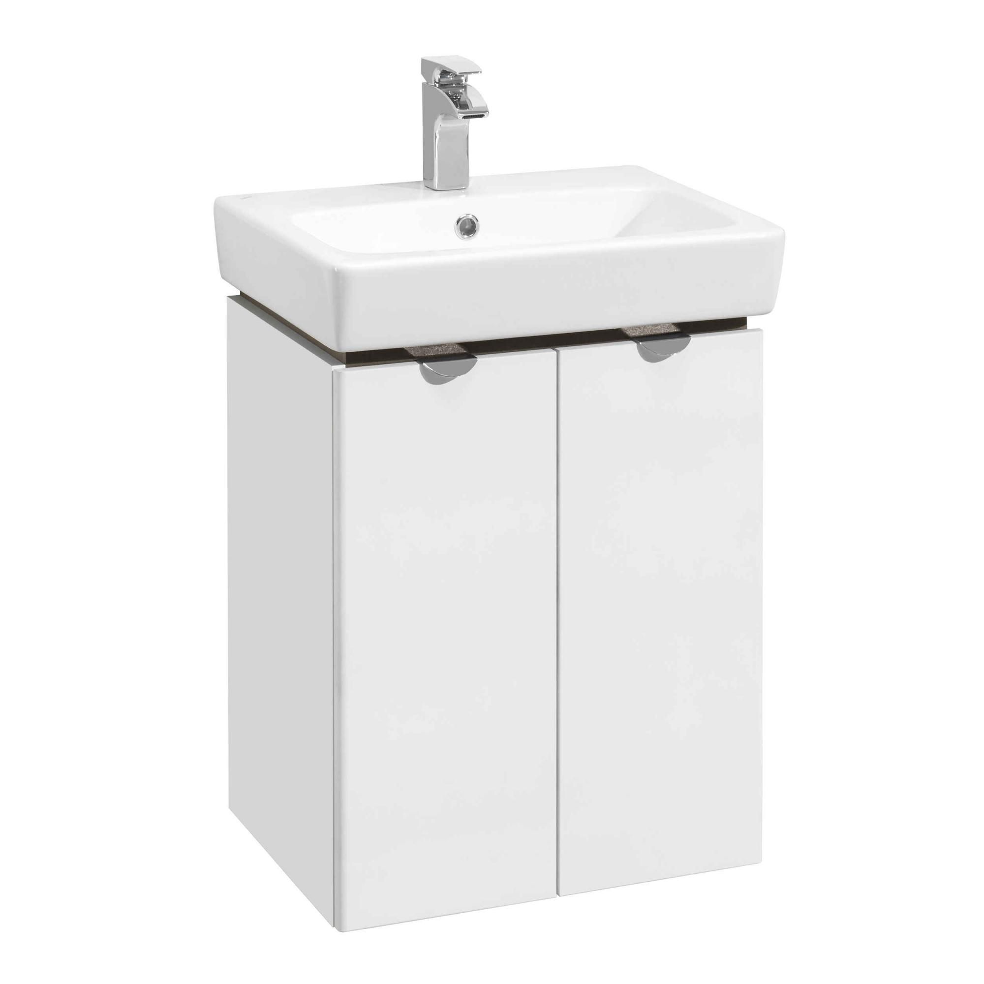 Вместительная и при этом компактная тумба Скай PRO 55 от AQUATON в современном стиле гармонично сочетает ультрабелые глянцевые фасады с декоративной вставкой в цвете серый кашемир - элегантное и практичное решение для удобной организации пространства в небольших ванных комнатах. Корпус модели из влагостойкой ЛДСП и фасады из высококачественной МДФ покрыты белой полиэфирной краской ультрафиолетового отверждения, которая гарантирует безупречный внешний вид, а также прочность и долговечность. За распашными фасадами-створками находится регулируемая по высоте полка, таким образом внутри достаточно места, чтобы разместить всё необходимое