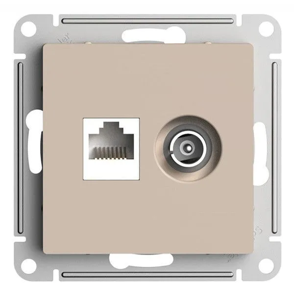Механизм коллекции AtlasDesign в исполнении ПЕСОЧНЫЙ двойной розетки разъёмами RJ45 категория 5е и TV.