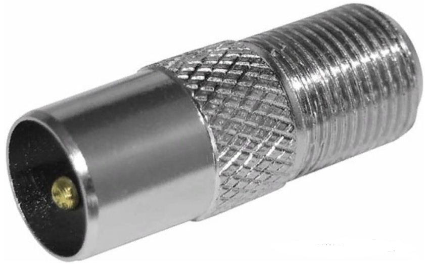 Переходник предназначен для соединения коаксиального кабеля (с предварительно установленным F-разъёмом) с ТВ оборудованиями, такими как (розетки -ТВ, ресиверы, приставки DVB-T2, антенны-ТВ и т.д.). Изготовлен переход из никелированного металла, контакты выполнены с высокими антикоррозийными свойствами.