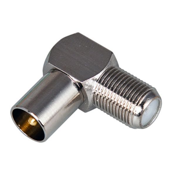 Предназначен для соединения двух кабелей волновым сопротивлением 50 или 75 Ом, имеющих на концах разные типы ТВ-разъемов. Применяется для подключения эфирного, кабельного и спутникового телевидения к телевизионному оборудованию. Отличительной особенностью переходника является угловая форма, позволяющая соединять провода, исключая сильных перегибов в ограниченном пространстве и наличие амортизирующего кольца. С одной стороны находится гнездо F-разъема, а с другой гнездо ТВ-разъема. Изготовлен переход из никелированного сплава первичной меди (биметалл), что гарантирует минимальный уровень потерь при прохождении сигнала. Разъем соединяет кабель методом накрутки F-коннектора с одной стороны, после соответствующей зачистки контактов, и стыковки штекера ТВ с другой, не требуя в ходе монтажа применения каких-либо специальных инструментов.
