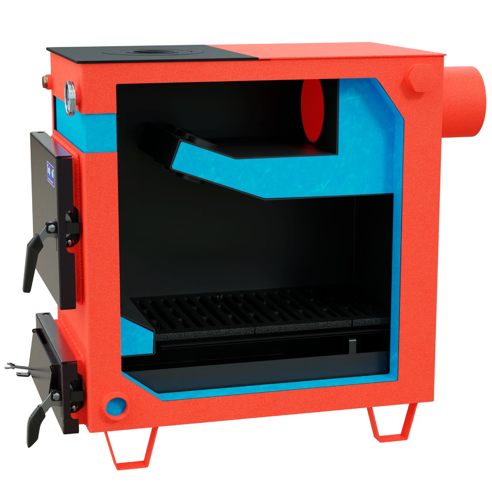 - Котел оснащён варочной плитой, что позволяет эргономично использовать пространство;