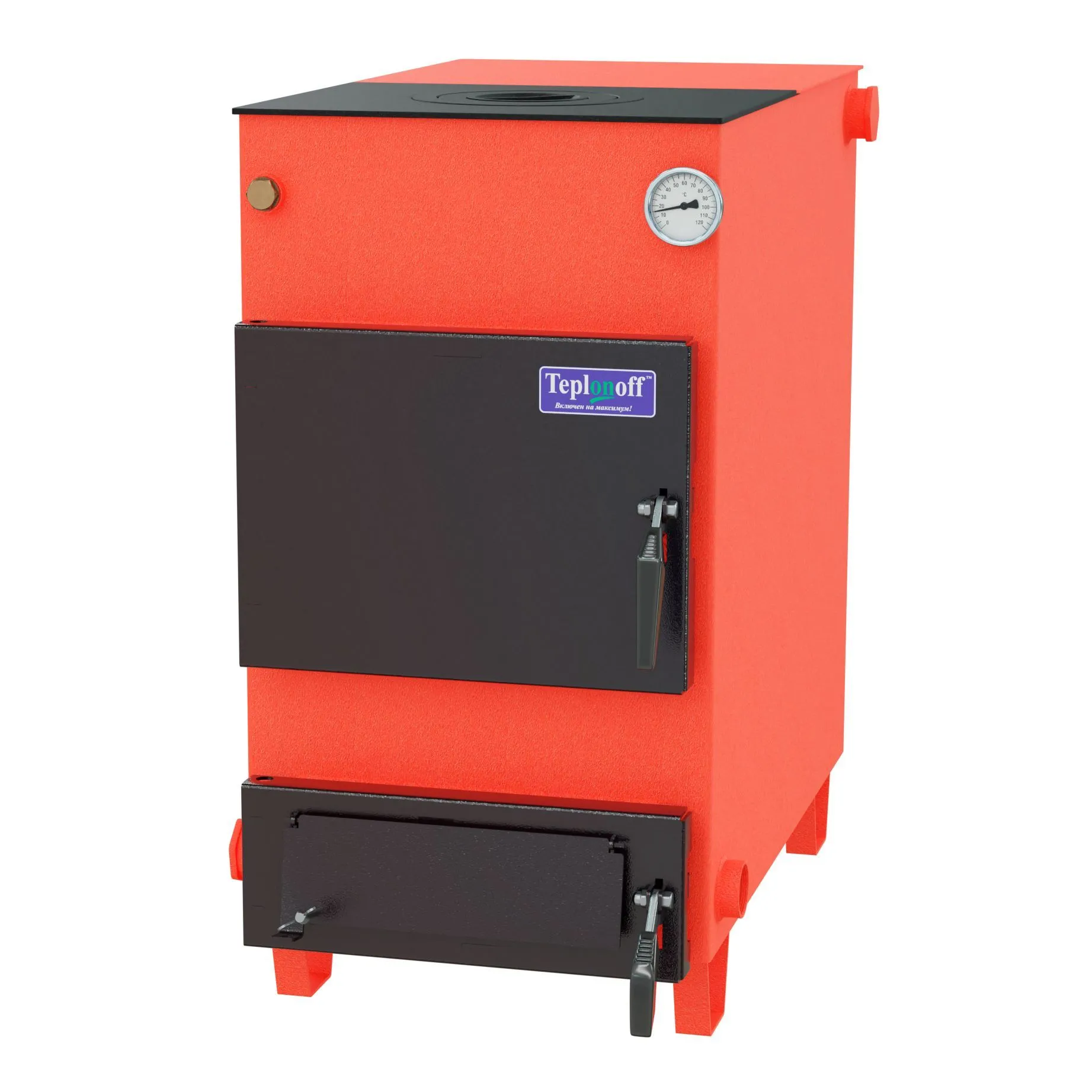 Котел Теплонофф серии WOOD – это котел с увеличенной топочной камерой. Данный котел функционирует на твердом топливе: дрова, прессованные брикеты, уголь. Имеется варочная поверхность. В конструкции предусмотрена возможность установки автоматического регулятора тяги подачи воздуха и блока ТЭН. Подключение в систему отопления универсальное, выход дымохода сзади.