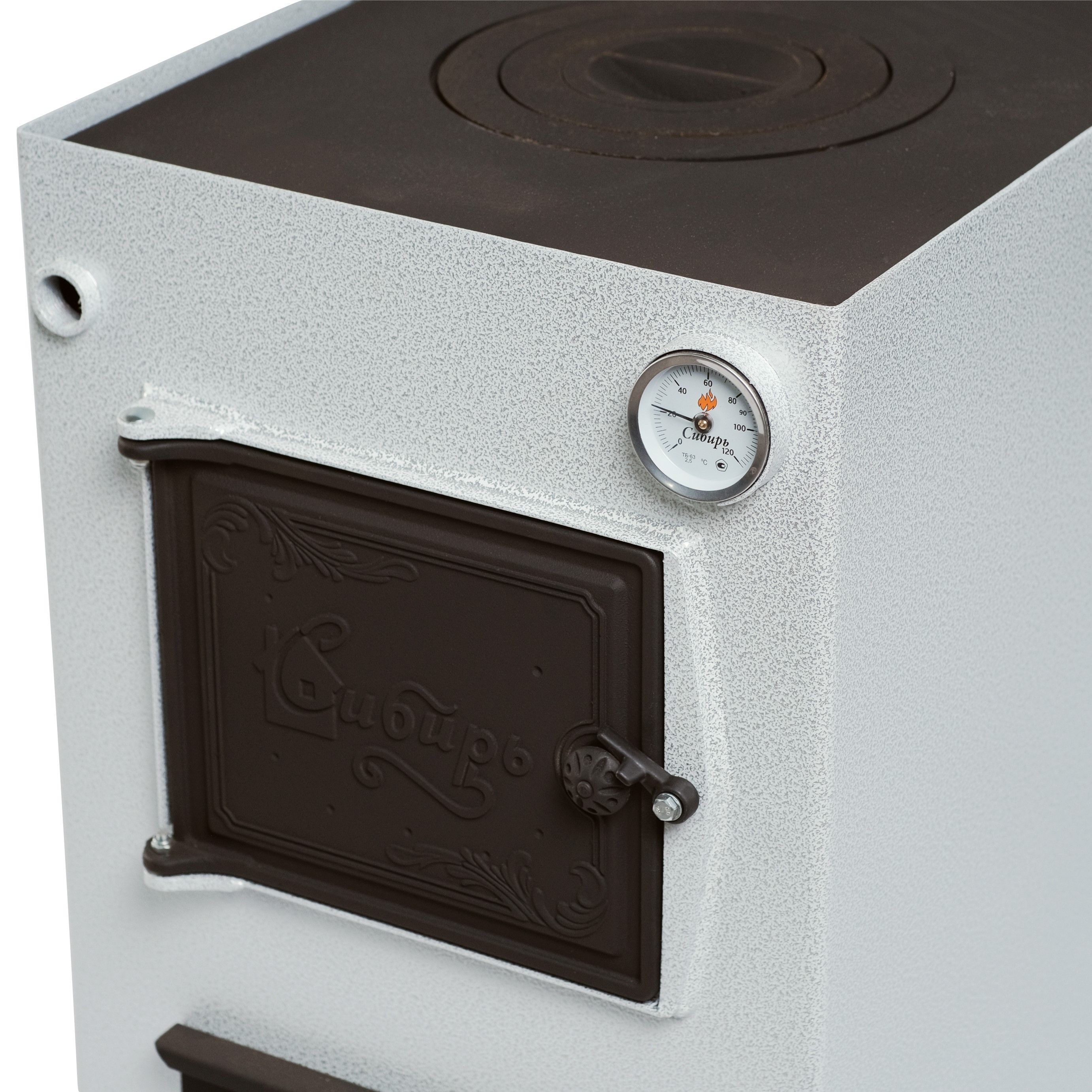 Котел Сибирь отлично подойдет для дома и дачи. Данный котел функционирует на твердом топливе: дрова, уголь. Имеется варочная поверхность.