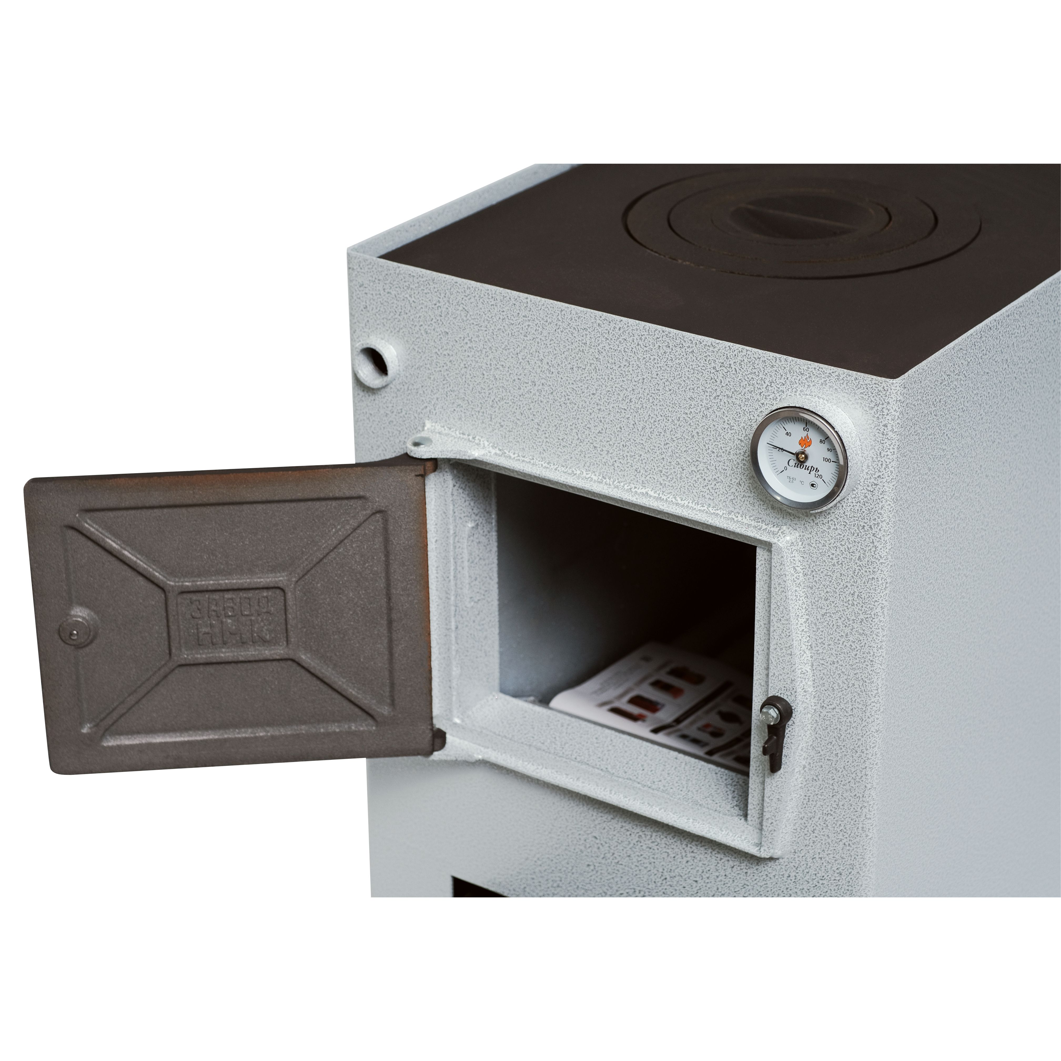 - Варочная поверхность изготовлена из стальной плиты толщиной 12 мм, что делает этот котел долговечным и комфортным в использовании.