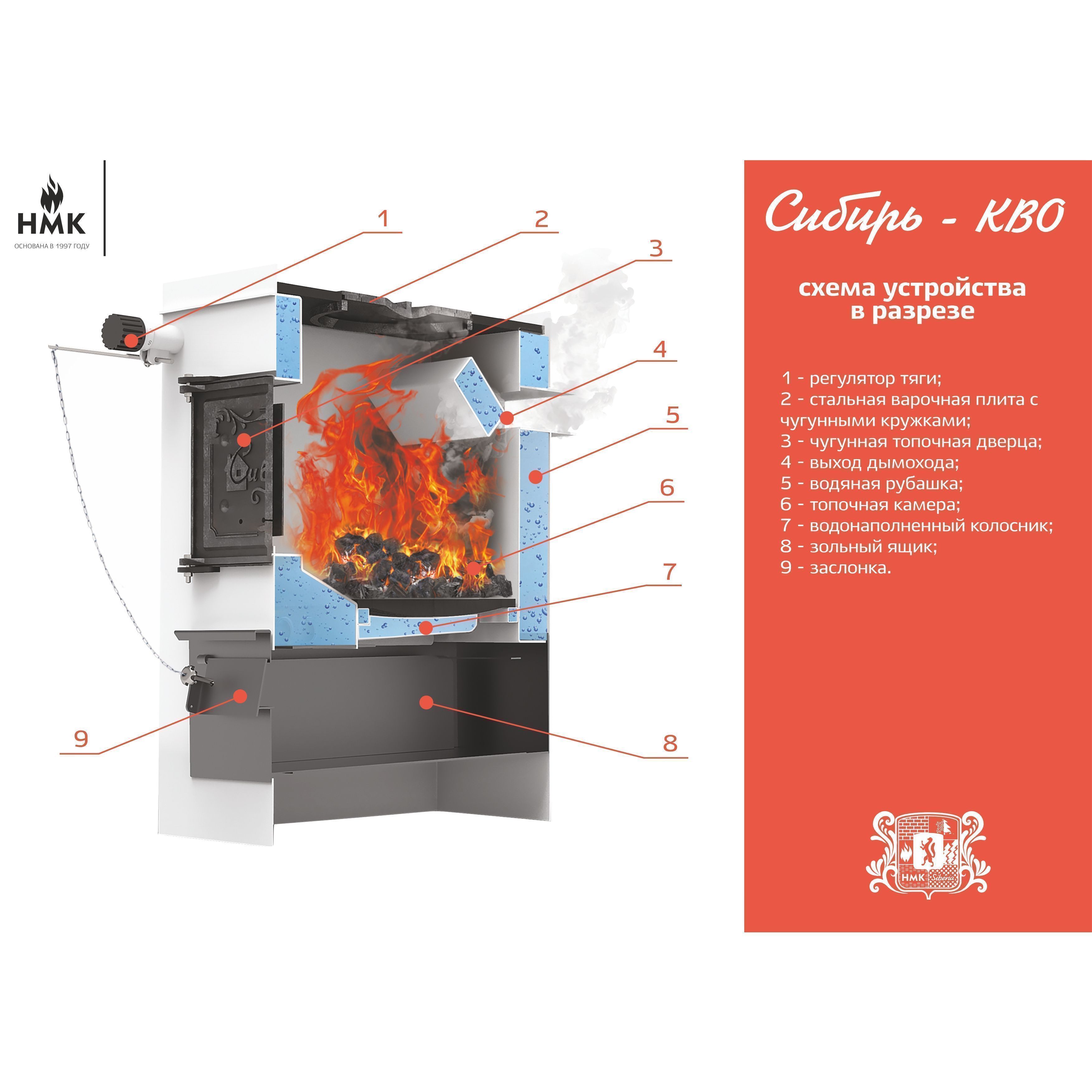 Котел Сибирь отлично подойдет для дома и дачи. Данный котел функционирует на твердом топливе: дрова, уголь. Имеется варочная поверхность.