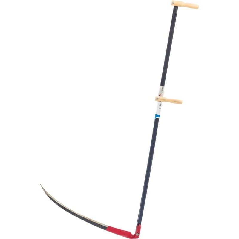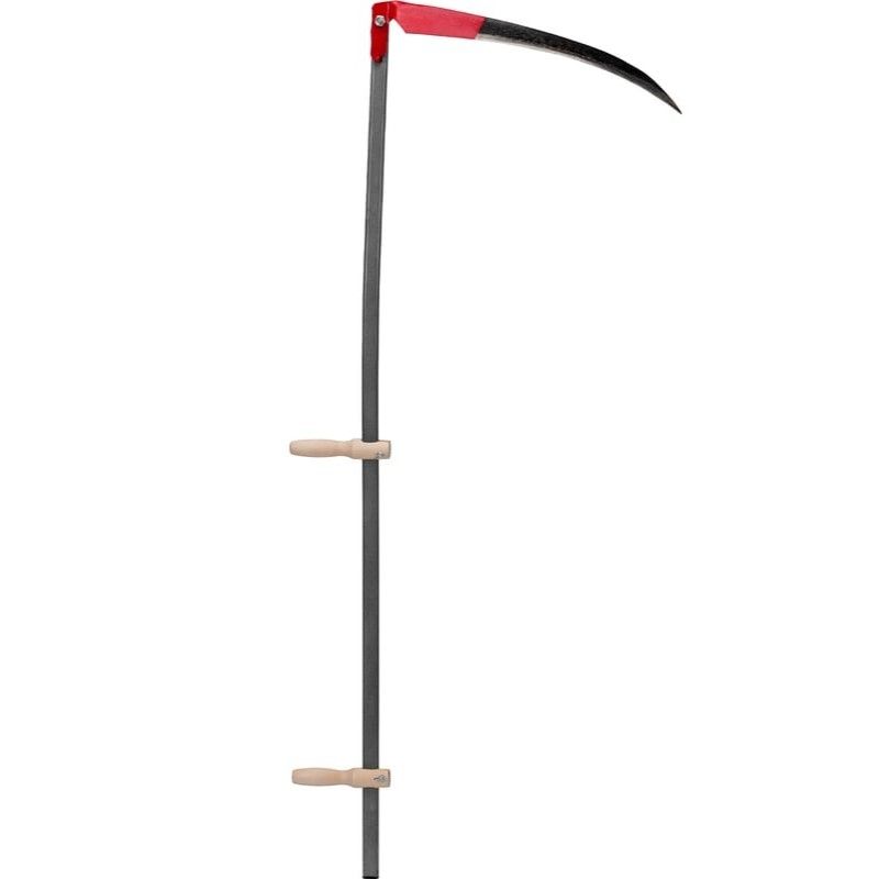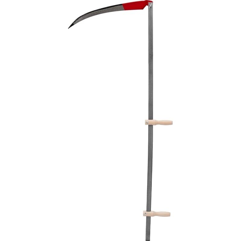Работу облегчают рукоятки, которые фиксируются на косовище в зависимости от роста и телосложения косаря.