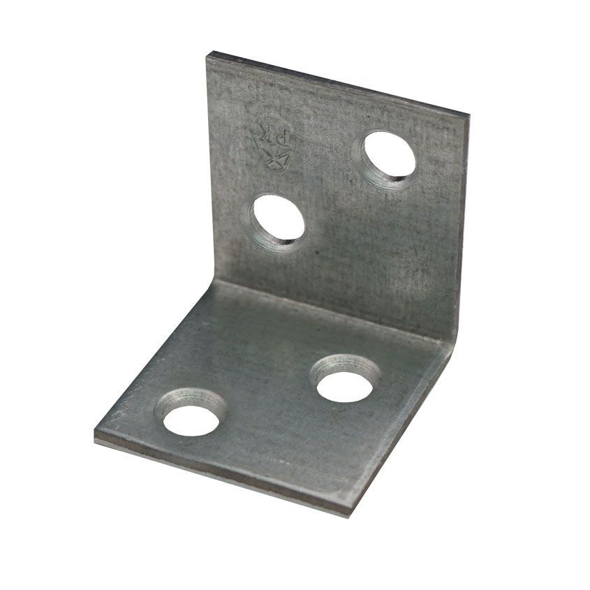 Уголок крепежный усиленный 25х25х25х2 изготовлен из оцинкованной стали. Представляет собой пластину, согнутую под прямым углом. По центру проходит ребро жесткости. На обоих плечах (сторонах уголка) есть отверстия круглой формы: по одному отверстию большего диаметра под саморезы, болты; по несколько отверстий меньшего диаметра под гвозди, шурупы.