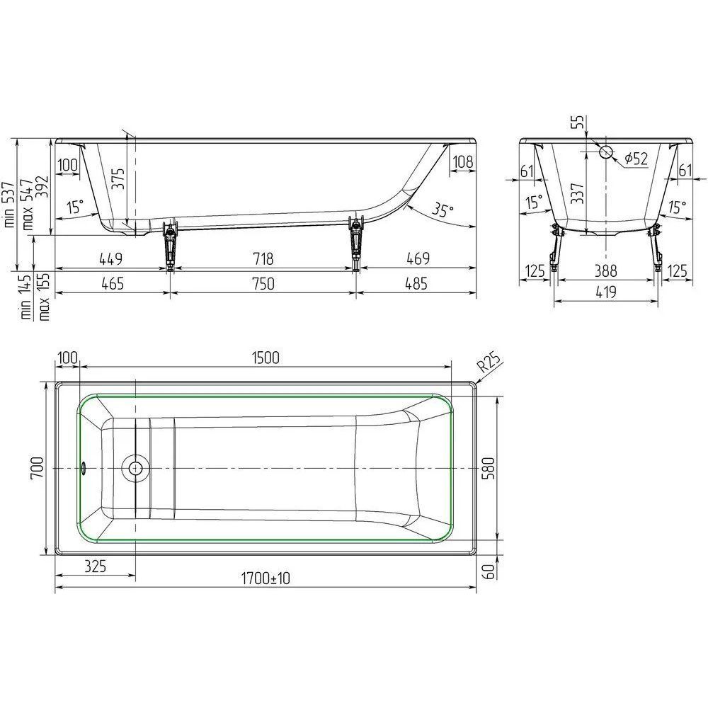 Ванна чугун 1700х700х375 "Оптима" (г.Новокузнецк), с ножками, белая цена - купить в Барнауле, Бийске. Размеры, характеристики, фото в интернет-магазине.