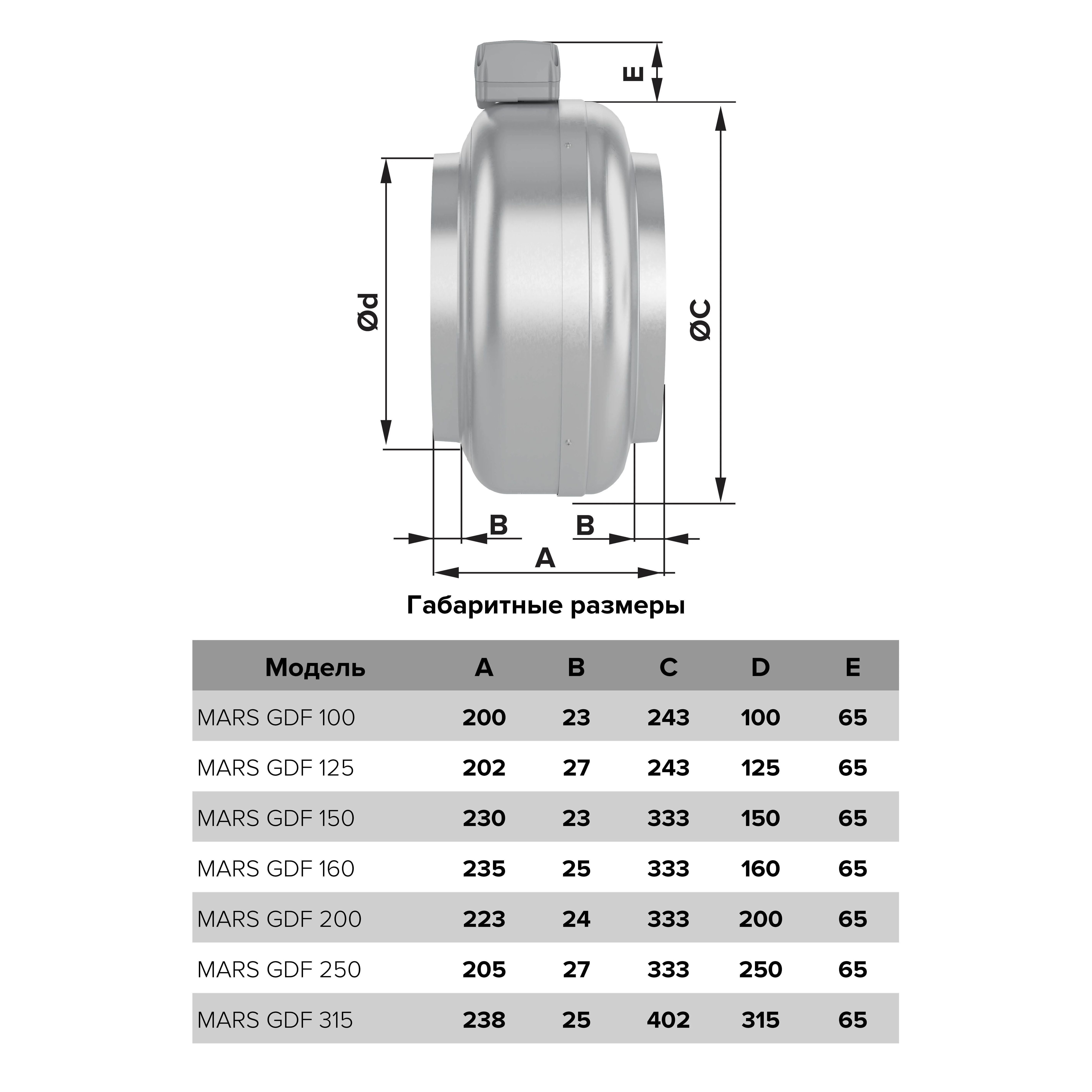 Вентилятор Era Mars GDF 150 представляет собой круглый канальный вентилятор в оцинкованном стальном корпусе.