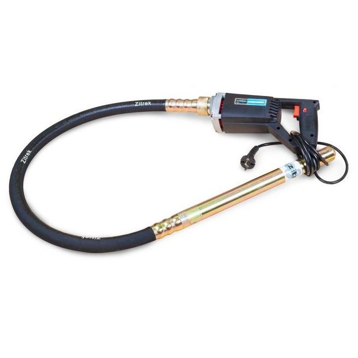 Вибратор портативный Zitrek используется для уплотнения бетонных смесей. Мощность электрического двигателя 0,8 кВт. Питание осуществляется от стандартной сети с переменным током 220 В. Длина вала 1,5 м, диаметр булавы 35 мм. Компактные габариты устройства может позволяют эксплуатировать его на объектах с ограниченным рабочим пространством. Кнопка включения располагается непосредственно на D-образной рукояти.