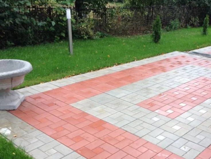 - На поверхности вибролитой тротуарной плитки не образуются лужи, так как вода свободно уходит через зазоры, заполненные песком, при необходимости проведения ремонтных работ (например, прокладка подземных коммуникаций) вибролитую тротуарную плитку можно легко снять, провести необходимые работы и уложить снова;