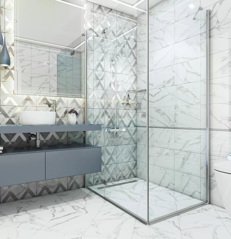 Встречайте: тренд 2021 года — голубой мрамор с яркими прожилками в сочетании с благородным белым Carrara, который на сегодняшний день находится на пике популярности. С коллекцией «Виченца» можно создать светлый интерьер, используя только белый мрамор. Акцентом в данном случае будет выступать рельефная поверхность, создающая объем и световые блики в помещении. Визитная карточка коллекции — эффект среза камня, имитирующего золотые прожилки на яркой базовой плитке.