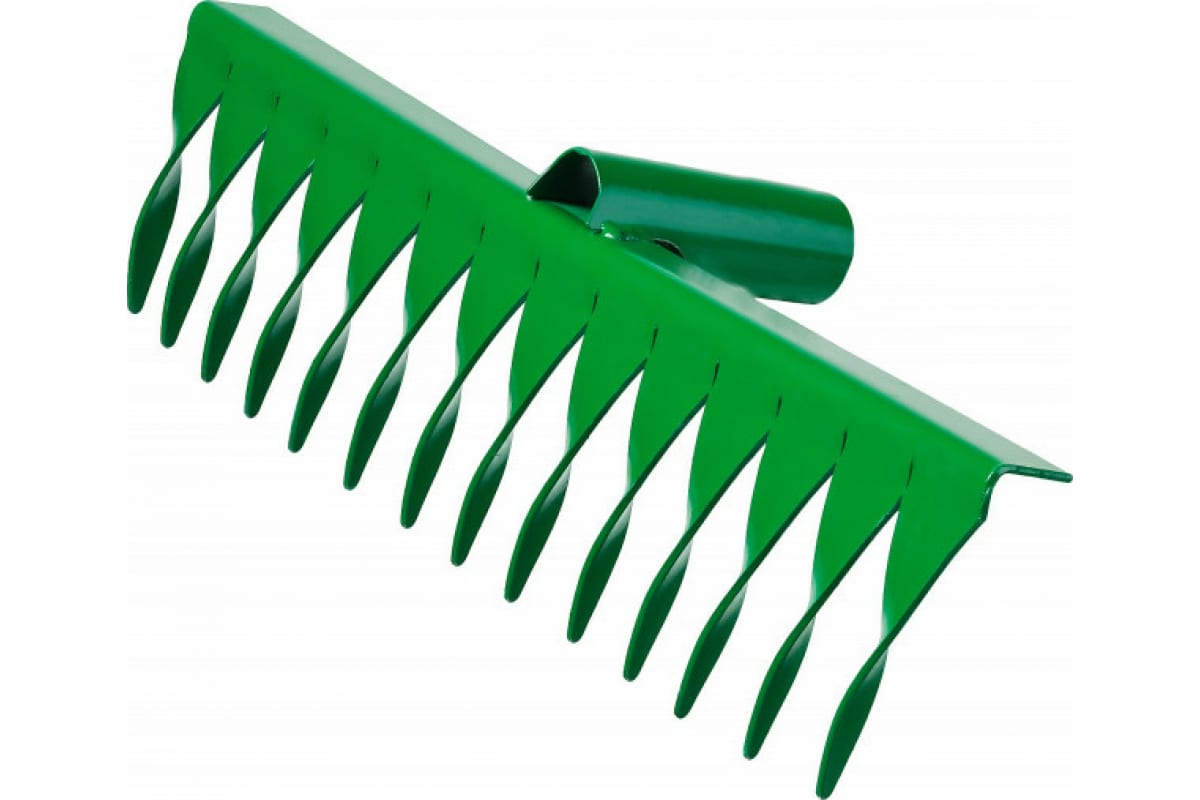 Рабочая часть из прочной стали устойчива к деформации. Порошковая краска оберегает инструмент от коррозии. Широкие зубья надежно удерживают собранный мусор, позволяя убрать территорию за один проход.