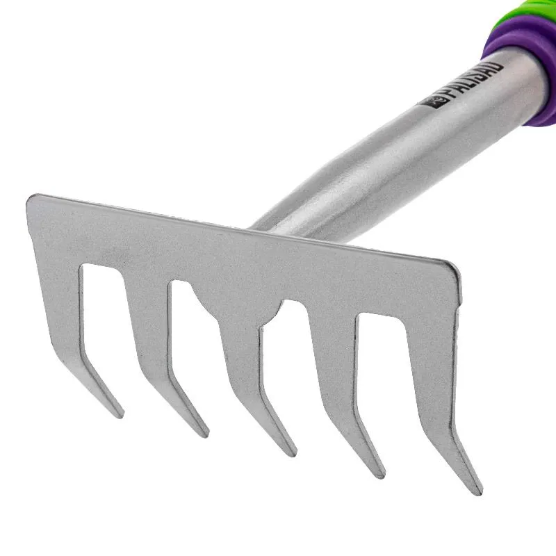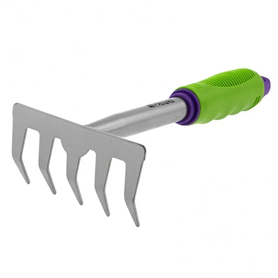 - Инструмент не ржавеет, а на зубья не налипает земля благодаря покрытию из порошковой эмали;