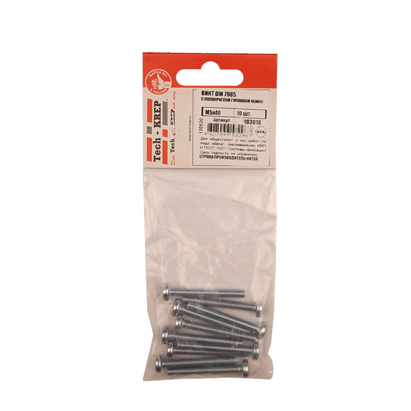 Винт DIN7985 оцинкованный M5х40мм имеет полукруглую головку и крестообразный шлиц PH, полную метрическую резьбу. Изготовлен из углеродистой стали с антикоррозионным цинковым покрытием. Изделие изготовлено по европейскому стандарту DIN 7985.