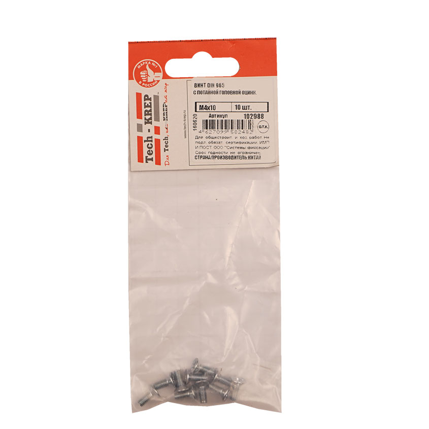 Винт DIN965 М4х10мм имеет потайную головку с крестообразным шлицем PH и полную метрическую резьбу. Изготовлен из углеродистой стали с антикоррозионным цинковым покрытием.