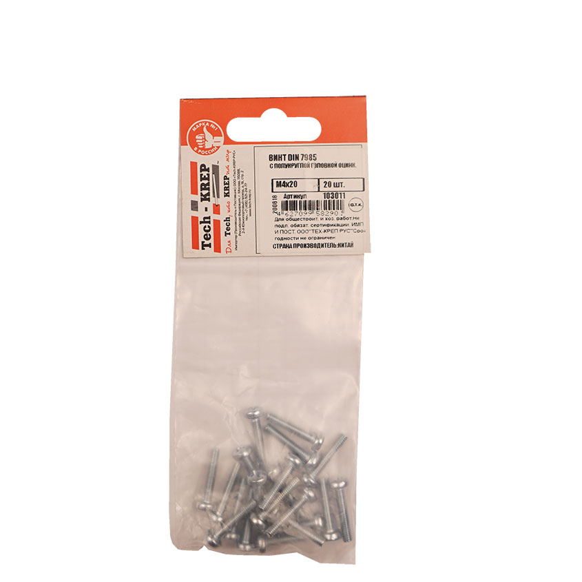 Винт DIN7985 оцинкованный M4х20мм имеет полукруглую головку и крестообразный шлиц PH, полную метрическую резьбу. Изготовлен из углеродистой стали с антикоррозионным цинковым покрытием. Изделие изготовлено по европейскому стандарту DIN 7985.