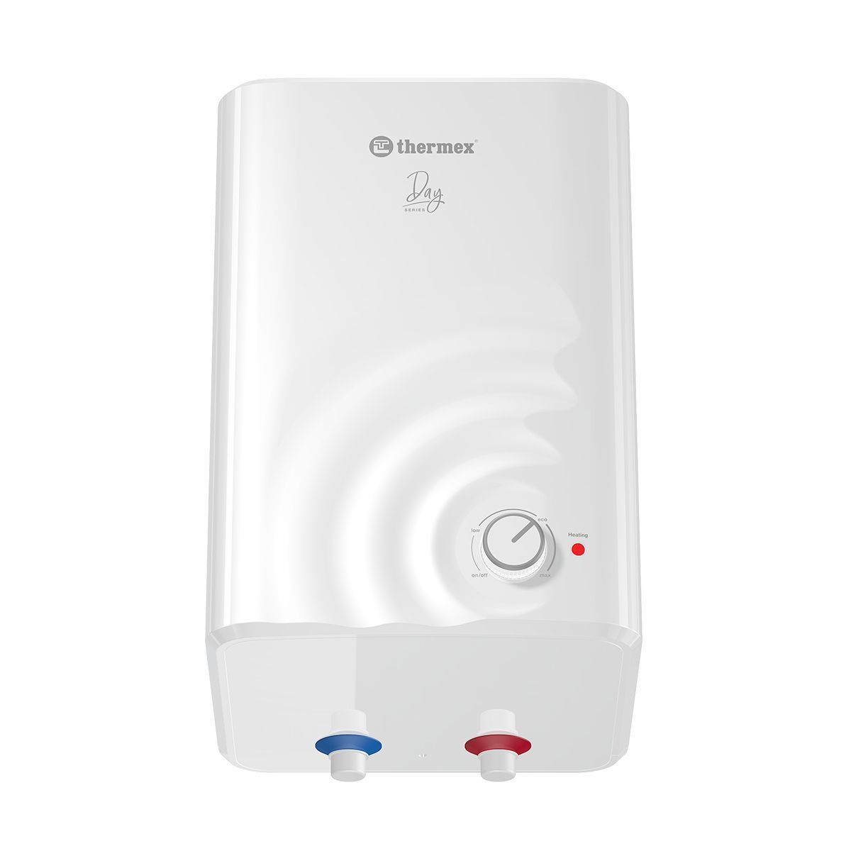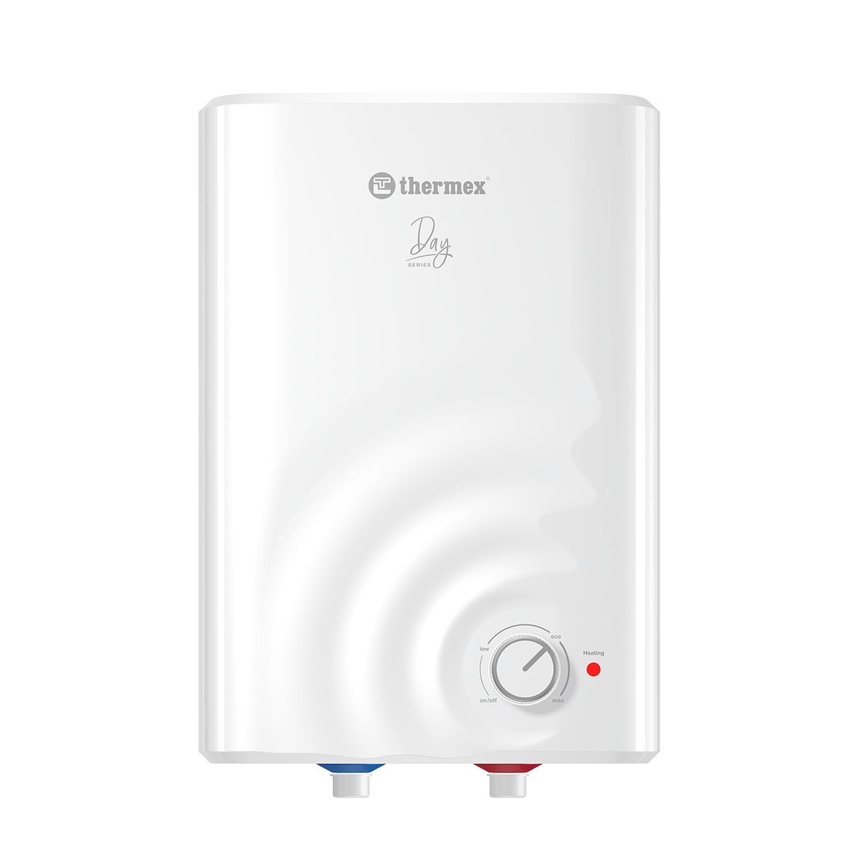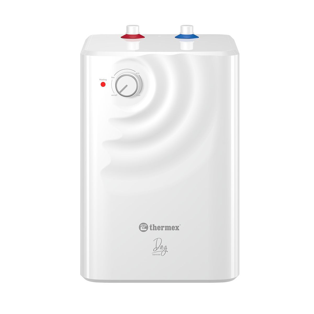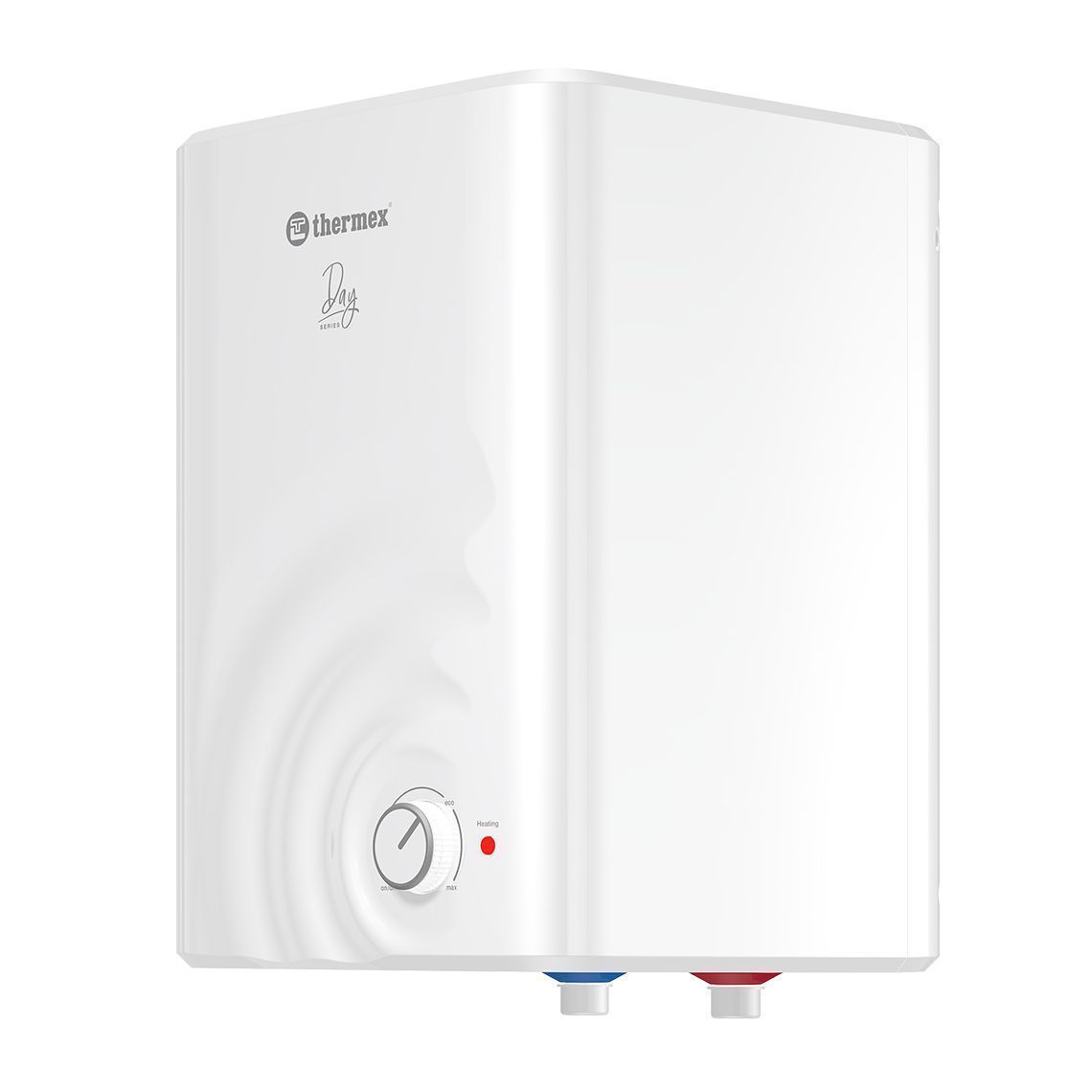 - Уникальный дизайн и удобная форма. Внешне серия Day смотрится необычно и интересно. Классический белый водонагреватель с водной гладью на фронтальной стороне дополнит и разнообразит интерьер. Прямоугольная форма бака делает прибор компактным и удобным для размещения на кухне, в ванной, любых нишах или шкафах.