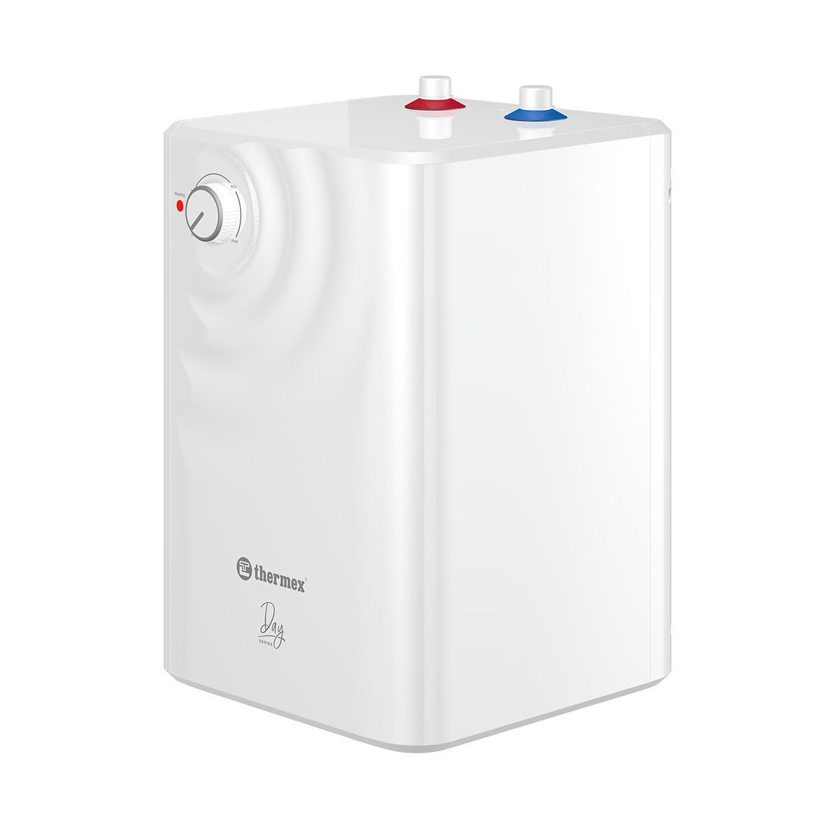 - Уникальный дизайн и удобная форма. Внешне серия Day смотрится необычно и интересно. Классический белый водонагреватель с водной гладью на фронтальной стороне дополнит и разнообразит интерьер. Прямоугольная форма бака делает прибор компактным и удобным для размещения на кухне, в ванной, любых нишах или шкафах.