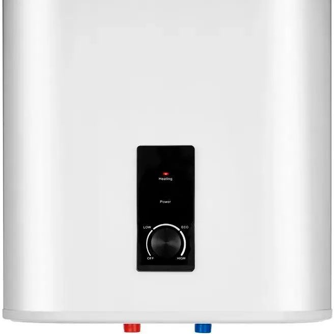 Водонагреватель имеет удобную плоскую форму и оснащен мощным медным нагревательным элементом.