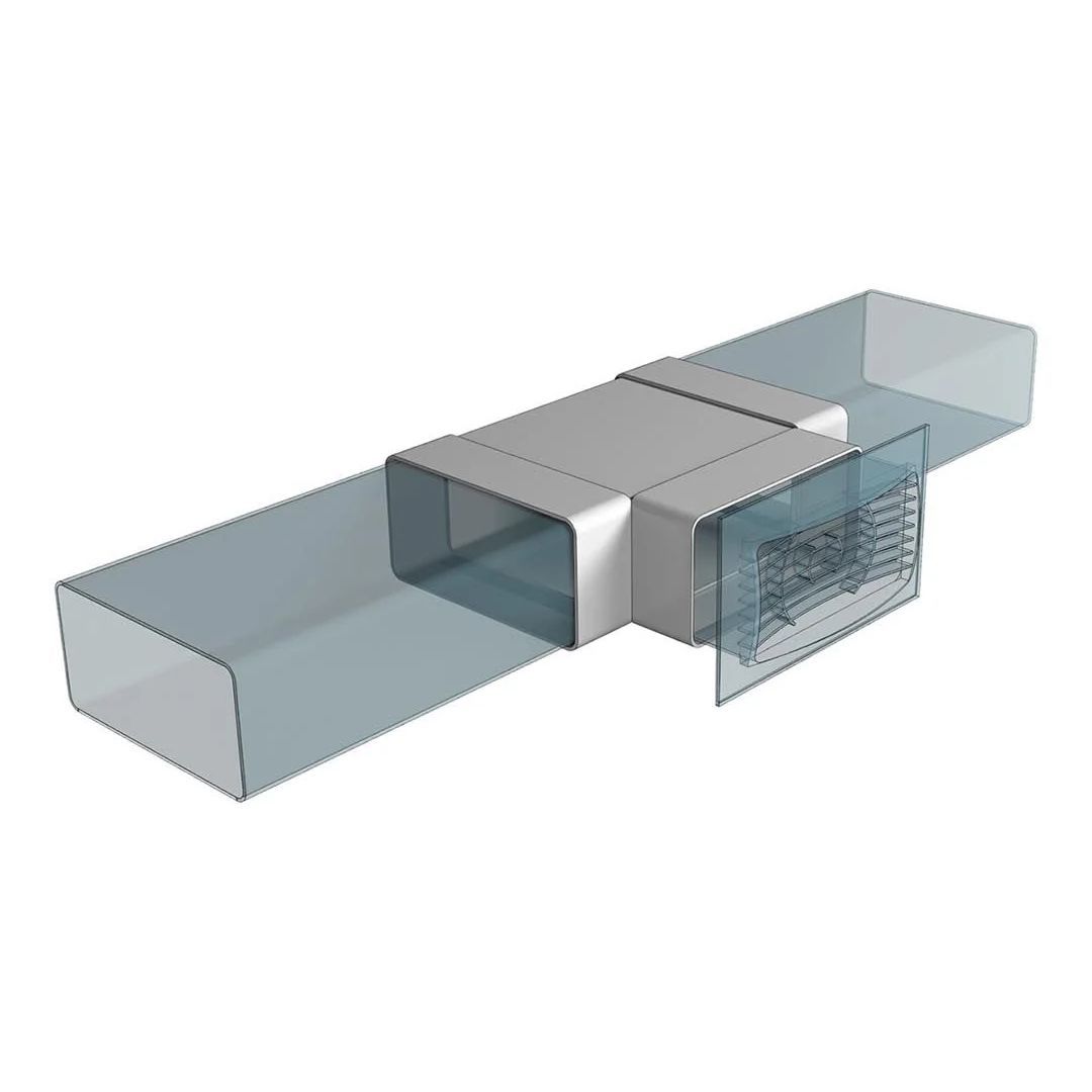 Тройник для плоских вентиляционных каналов 60x120 мм предназанчен для формирования узлов ответвлений приточных или вытяжных вентиляционных систем бытовых, общественных и прочих зданий, для соединения плоских каналов одного сечения и объединения их в сложные системы вентиляции. C каналами соответсвующего сечения соединяется напрямую. Система пластиковых каналов является идеальным средством для создания систем вентиляции небольших и средних помещений (жилых, офисных, коммерческих), а также подключения вытяжного оборудования (кухонных вытяжек, шкафов, зонтов и пр.).