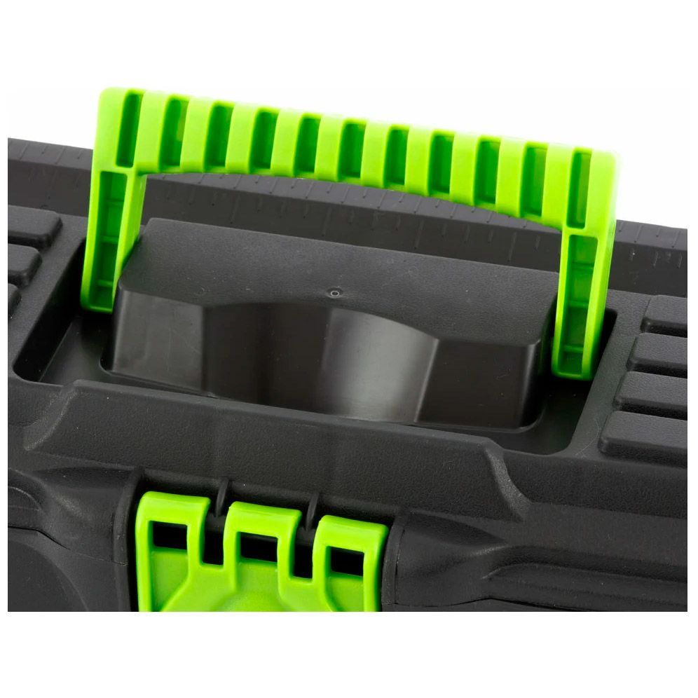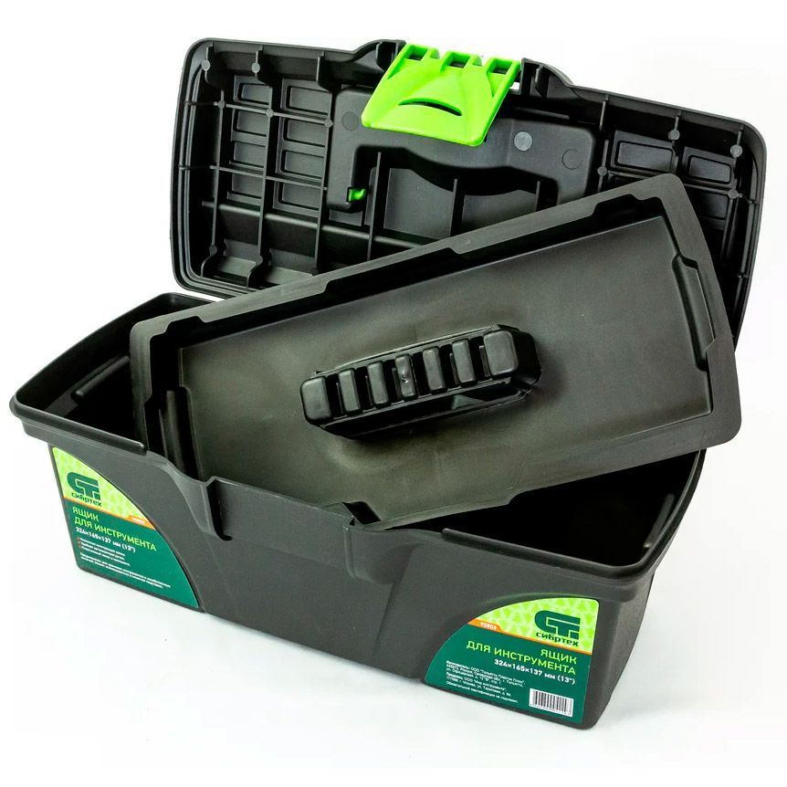 Ящик для инструмента Сибртех из пластика — удобное вместилище для инструментов, бытовых мелочей, рыболовных снастей. На крышку нанесена измерительная шкала в сантиметрах и дюймах, поэтому можно проводить измерения, даже если под рукой нет линейки. Ящик пригодится в поездке, на рыбалке, а также дома, на даче или в гараже.