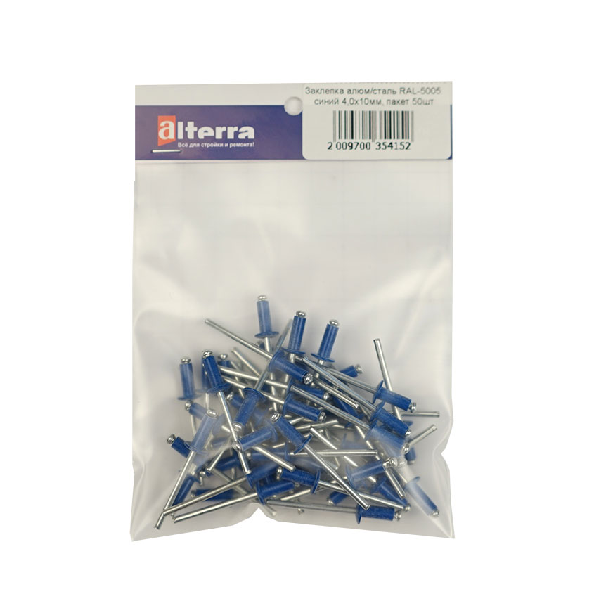 Заклепка вытяжная алюминий/сталь RAL5005 синий 4,0х10мм, пакет 50шт цена - купить в Барнауле, Бийске. Размеры, характеристики, фото в интернет-магазине.