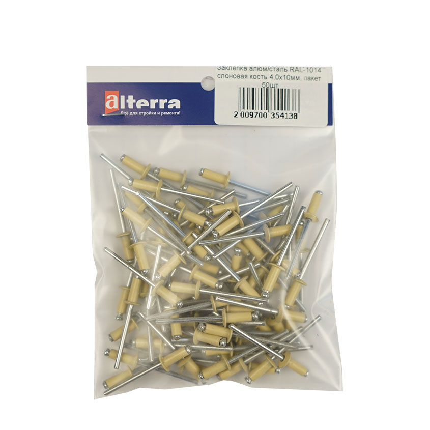 Заклепка вытяжная алюминий/сталь RAL1014 слоновая кость 4,0х10мм, пакет 50шт цена - купить в Барнауле, Бийске. Размеры, характеристики, фото в интернет-магазине.
