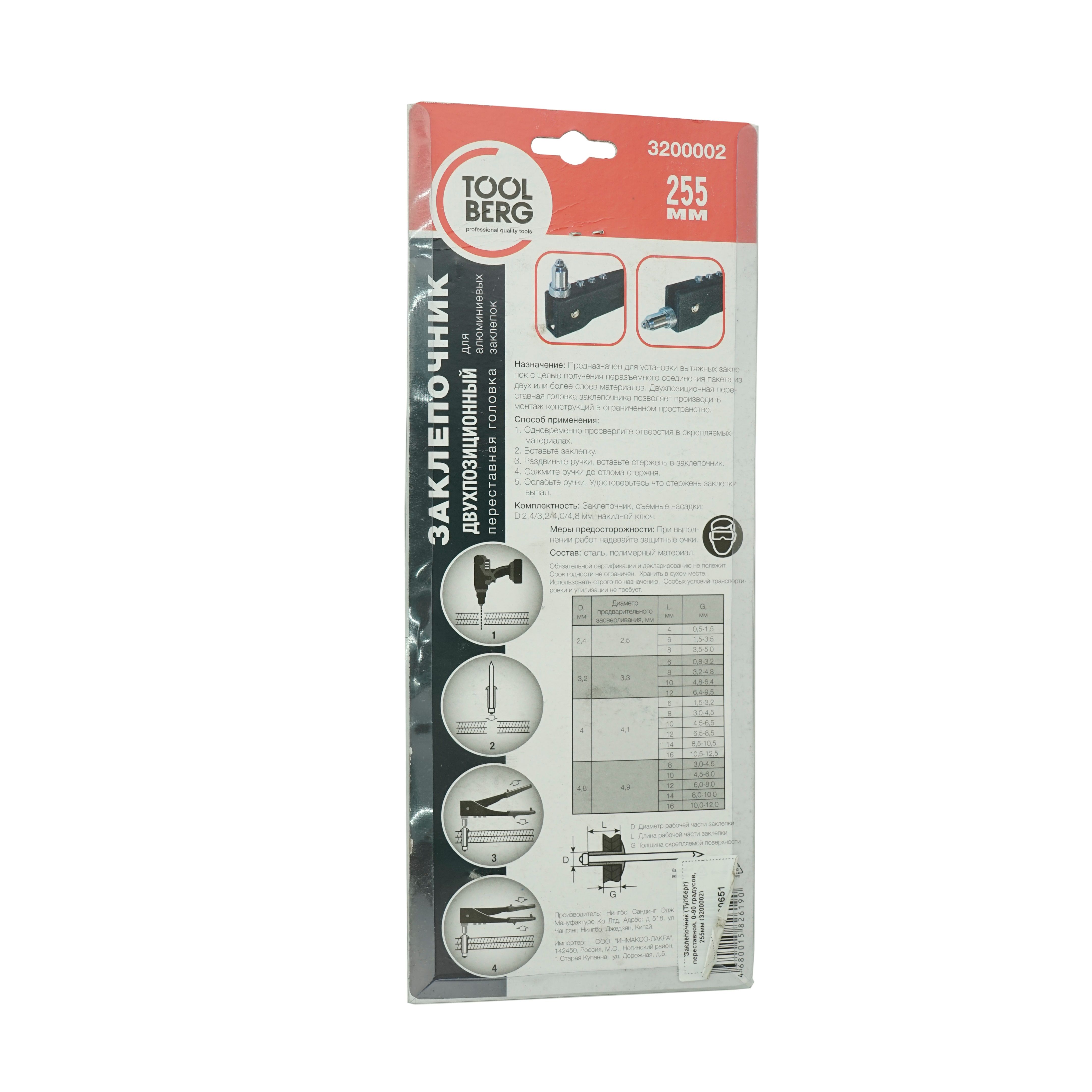 Заклепочник (Тулберг) переставной, 0-90 градусов, 255мм представляет собой заклепочный степлер для легкого и быстрого скрепления материалов между собой при помощи клепок. Инструмент имеет простую конструкцию, удобен в работе одной рукой.