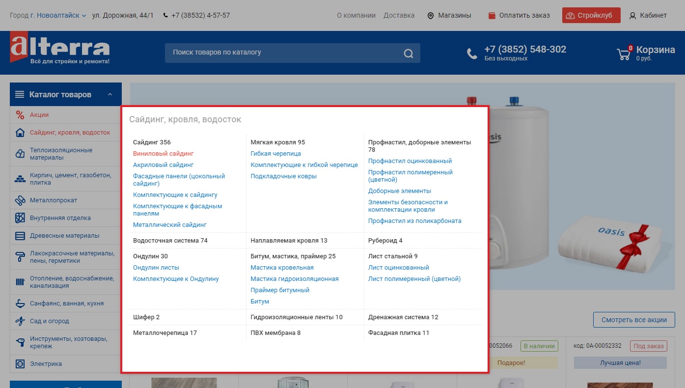 Выбрав определенную категорию, Вы сразу можете перейти в нужный раздел.